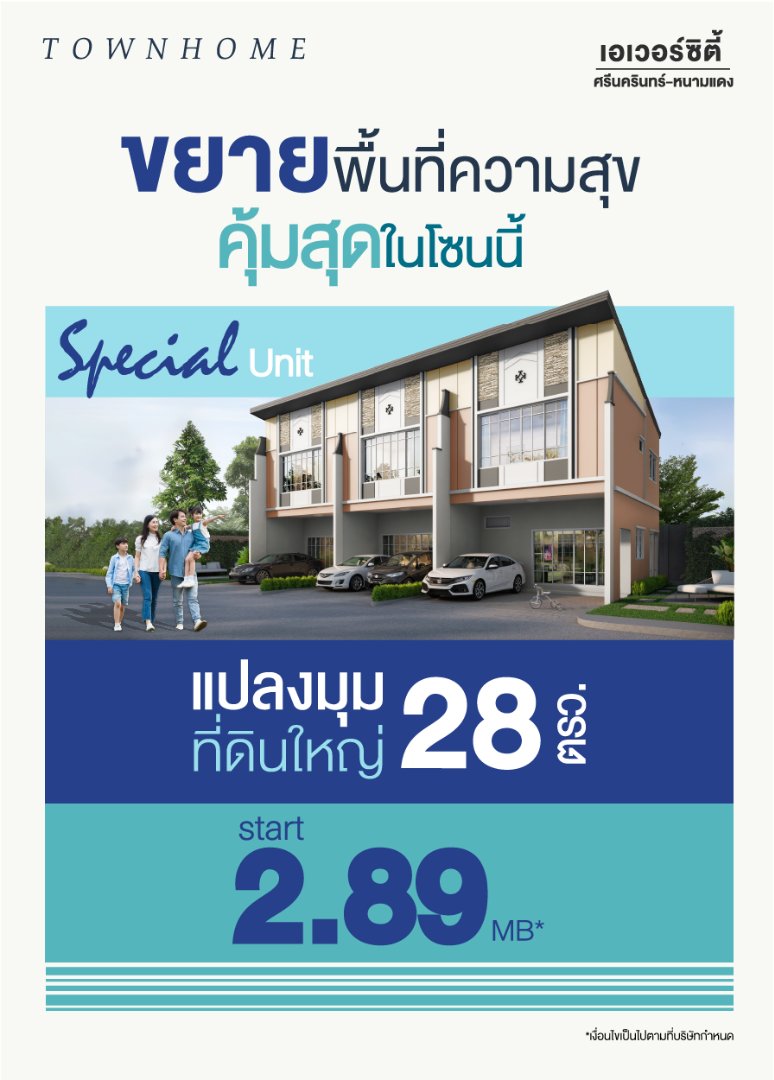เพราะ “ ใส่ใจ ” ในความต้องการของผู้อยู่อาศัยมากกว่าผลตอบแทน คือจุดเริ่มต้นของ “เอเวอร์ซิตี้ ทาวน์โฮม” ชุมชนสมบูรณ์แบบ ที่คิดเผื่อแม้รายละเอียดเล็กๆ ที่คุณคาดไม่ถึงเพื่อตอบโจทย์ทุกไลฟ์สไตล์ ให้ลงตัวในทุกช่วงเวลาของชีวิต ด้วยดีไซน์หรูหราและแตกต่าง สะท้อนความสำเร็จของคนพิเศษเช่นคุณ